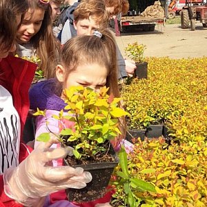 W szkółce czekał już na uczniów ogrodnik, a zarazem właściciel szkółki - pan Kazimierz Kulas, który opowiedział o przyjemnościach i trudach pracy ogrodnika. Uczniowie mieli okazję zobaczyć sporą część szkółki, podziwiać przeróżne okazy krzewów i drzew. Pan Kazimierz podzielił się z nimi historią założenia szkółki, która liczy już 40 lat. Wycieczkowicze mieli wiele pytań dotyczących uprawy i pielęgnacji roślin oraz ekologii, na które otrzymali ciekawe odpowiedzi. Na zakończenie tej wyprawy każdy ze zwiedzających otrzymał sadzonkę. Nasza szkoła również otrzymała prezent. Były to sadzonki bluszczu, które po powrocie z wycieczki nasi dzielni mali ogrodnicy posadzili na terenie szkoły. W ramach wdzięczności za gościnę w szkółce roślin uczniowie wręczyli właścicielom podziękowania.
