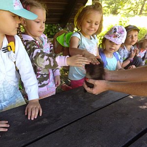 Przeprowadzone na łonie natury zajęcia dydaktyczne BHP " Zwierzoluba " były o leśnym ekosystemie z uwzględnieniem ludzi pracujących "z lasem" i jego mieszkańcami. Dzieci miały bezpośredni kontakt (z zachowaniem warunków bezpieczeństwa) z leczonymi zwierzętami leśnymi, które po wyzdrowieniu powrócą do lasu. Obserwowały małego osieroconego liska , pisklę jastrzębia, które wypadło z gniazda oraz małą kunę. Dowiedziały się jak należy zachowywać się w lesie, Była to na pewno wspaniała lekcja przyrodnicza, której głównym przesłaniem było : "las jest domem zwierząt, my ludzie jesteśmy tam gośćmi i zachowujmy się jak mile widziani goście.