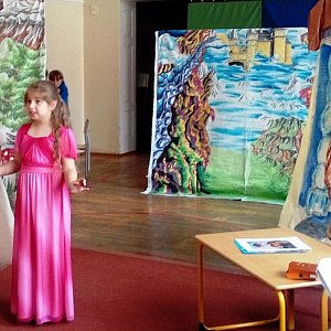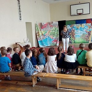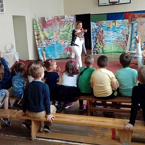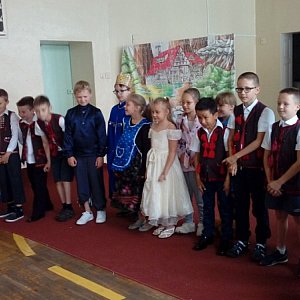 Zanim jednak uczniowie złożyli przyrzeczenie, obejrzeli niecodzienną wersję "Kopciuszka na sportowo", w wykonaniu uczniów klasy IIc przygotowanych przez panią Sylwię Jęczalek. Młodzi aktorzy przenieśli dzieci w zaczarowany i zabawny świat baśni. Po obejrzeniu bajki przyszli czytelnicy odgadywali bajkowe zagadki, które wymyślił i nauczyciel bibliotekarz pani Anna Bernacka.