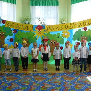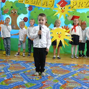 Dnia 22 czerwca 2017 r. odbyła się w naszym przedszkolu uroczystość zakończenia roku przedszkolnego oraz pożegnania starszaka - Oliwii Zeman. Dziesięć miesięcy wspólnych zabaw i zajęć, podróży po porach roku szybko minęło, aż nadszedł czas wakacji i pożegnań. Dzieci młodsze zaprezentowały zgromadzonym gościom program artystyczny pod hasłem:"Owocowe lato".