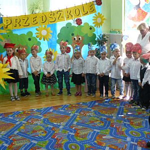 Po czym nastąpił najważniejszy punkt uroczystości- występ 6 latka. Oliwia dostojnie prezentowała swoje umiejętności recytatorskie i wokalne. Po części artystycznej Pani Dyrektor Bożena Lorent podziękowała rodzicom za zaangażowanie w działania na rzecz placówki. Rodzice w podziękowaniu otrzymali dyplomy Przyjaciel przedszkola natomiast dzieci nagrody książkowe, słodkie rożki obfitości. Miłą niespodziankę przygotowała dla wszystkich dzieci oraz rodziców babcia Oliwii - kolorowy i przepyszny tort. Kolejna absolwentka naszego przedszkola opuszcza nas, by rozpocząć po wakacjach naukę w klasie pierwszej. Życzymy jej wielu sukcesów i spełnienia marzeń, a wszystkim dzieciom bezpiecznych i radosnych wakacji.