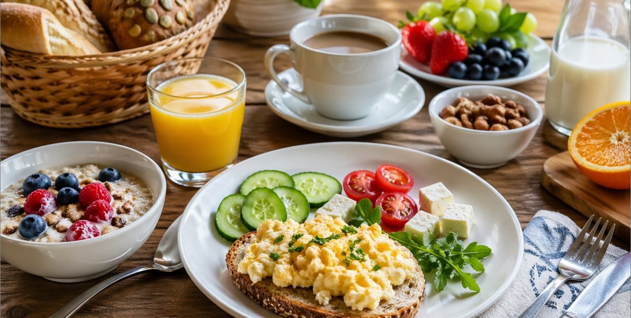 Dobre śniadanie powinno być zbilansowane. Najlepiej, jeśli zawiera produkty pełnoziarniste, białko oraz warzywa lub owoce. Dzięki temu organizm otrzymuje energię stopniowo, bez nagłych spadków.
