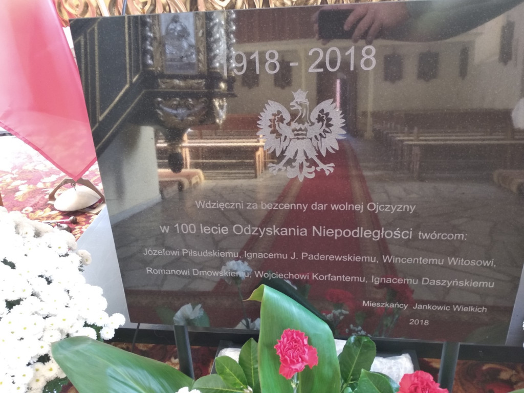 Na ten dzień Jankowice czekały długo, bo aż 100 lat od czasu odzyskania niepodległości. 11 listopada 2018 roku w czasie porannej mszy świętej została poświęcona tablica. Uroczystość zaszczycili swoją obecnością Wójt Gminy Olszanka Aneta Rabczewska, Wicestarosta Powiatu Brzeskiego