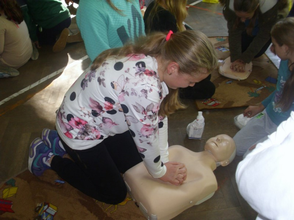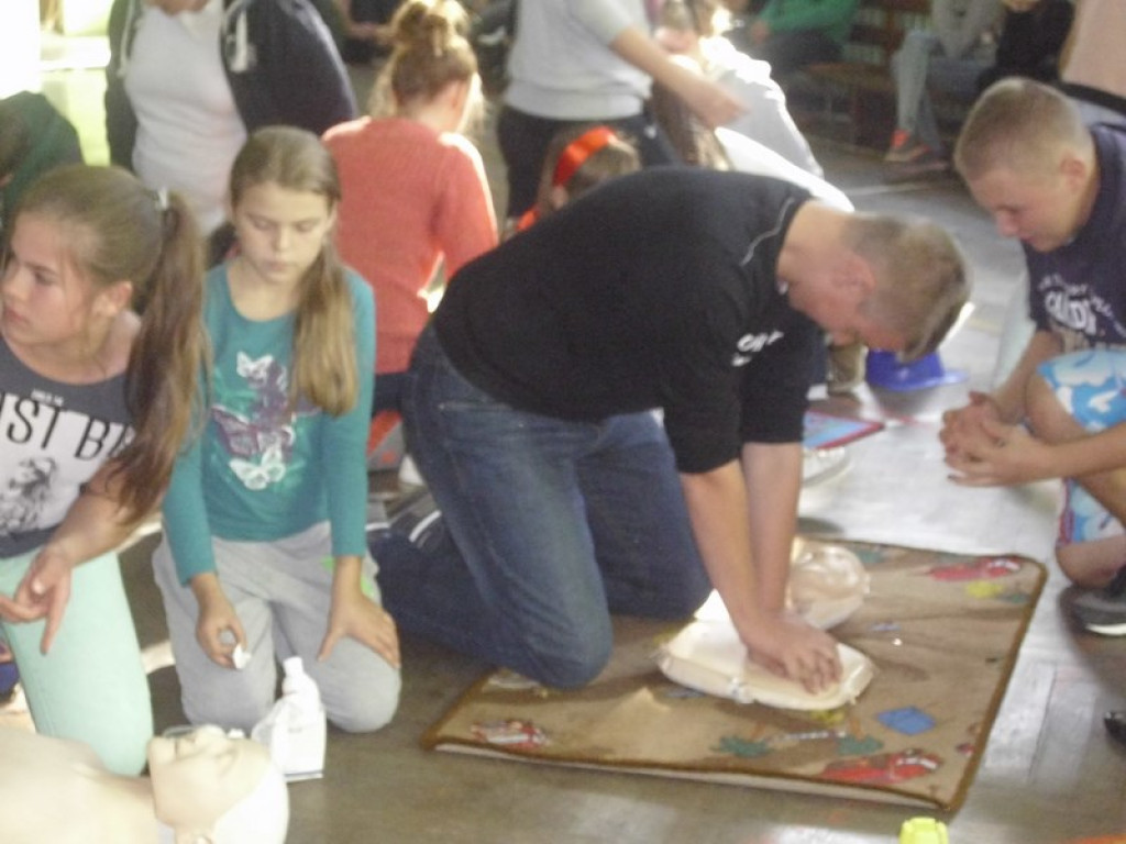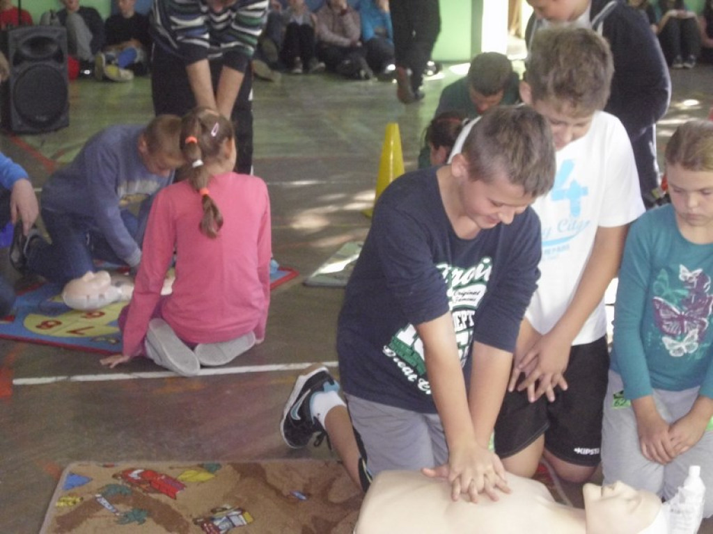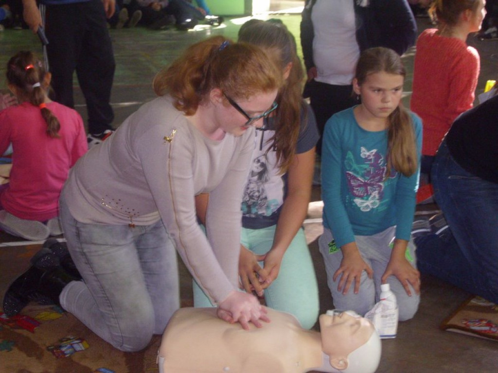 W słoneczny, jesienny piątek w hali sportowej PZSP w Olszance w Europejski Dzień Przywracania Czynności Serca, uczniowie ze szkoły podstawowej i gimnazjum naszej szkoły uczestniczyli w próbie pobicia rekordu z 2013 r. w resuscytacji krążeniowo-oddechowej prowadzonej przez jak największą ilość