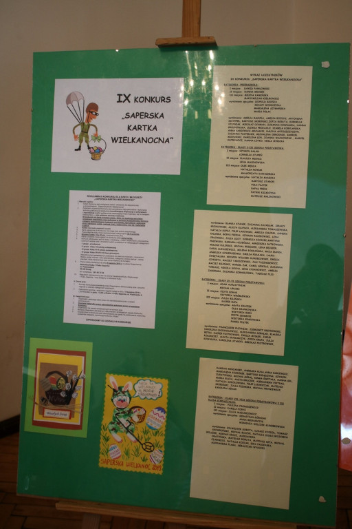Z roku na rok przybywa uczestników konkursu plastycznego "Saperska Kartka Wielkanocna" organizowanego przez bibliotekę Klubu 1. Pułku Saperów w Brzegu. Na tegoroczną IX edycję konkursu wpłynęło aż 145 prac, które zachwycają pomysłowością, wyobraźnią autorów, kolorami, połączeniem