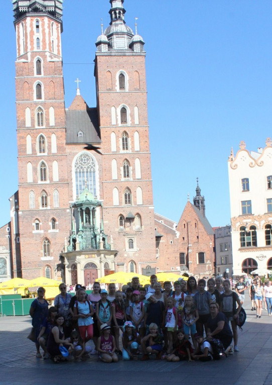Wakacyjną niespodziankę dla dzieci z 1 Pułku Saperów w Brzegu przygotowała pani Anna Glińska wraz z paniami: Janą Koronkiewicz i Joanna Watras. A był nią trzydniowy wyjazd do Krakowa...i nie tylko! Pierwszego dnia mali uczestnicy zwiedzali Stary Rynek w Krakowie, gdzie usłyszeli hejnał